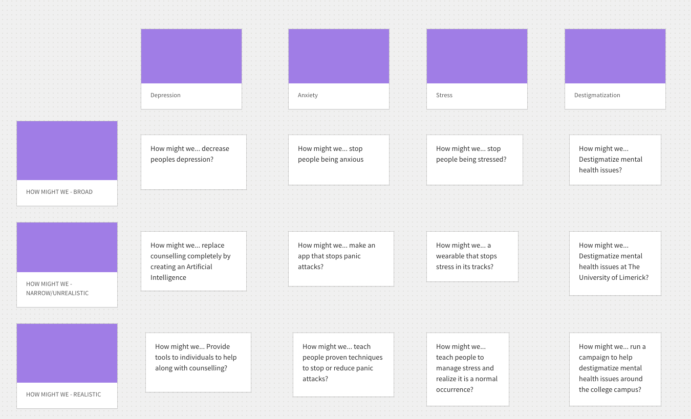 Following my defining of the problem from the research I analysed all of my data and moved onto the design phase. Here I used a few different techniques based on the data I gathered to brainstorm potential solutions to the users problems.
