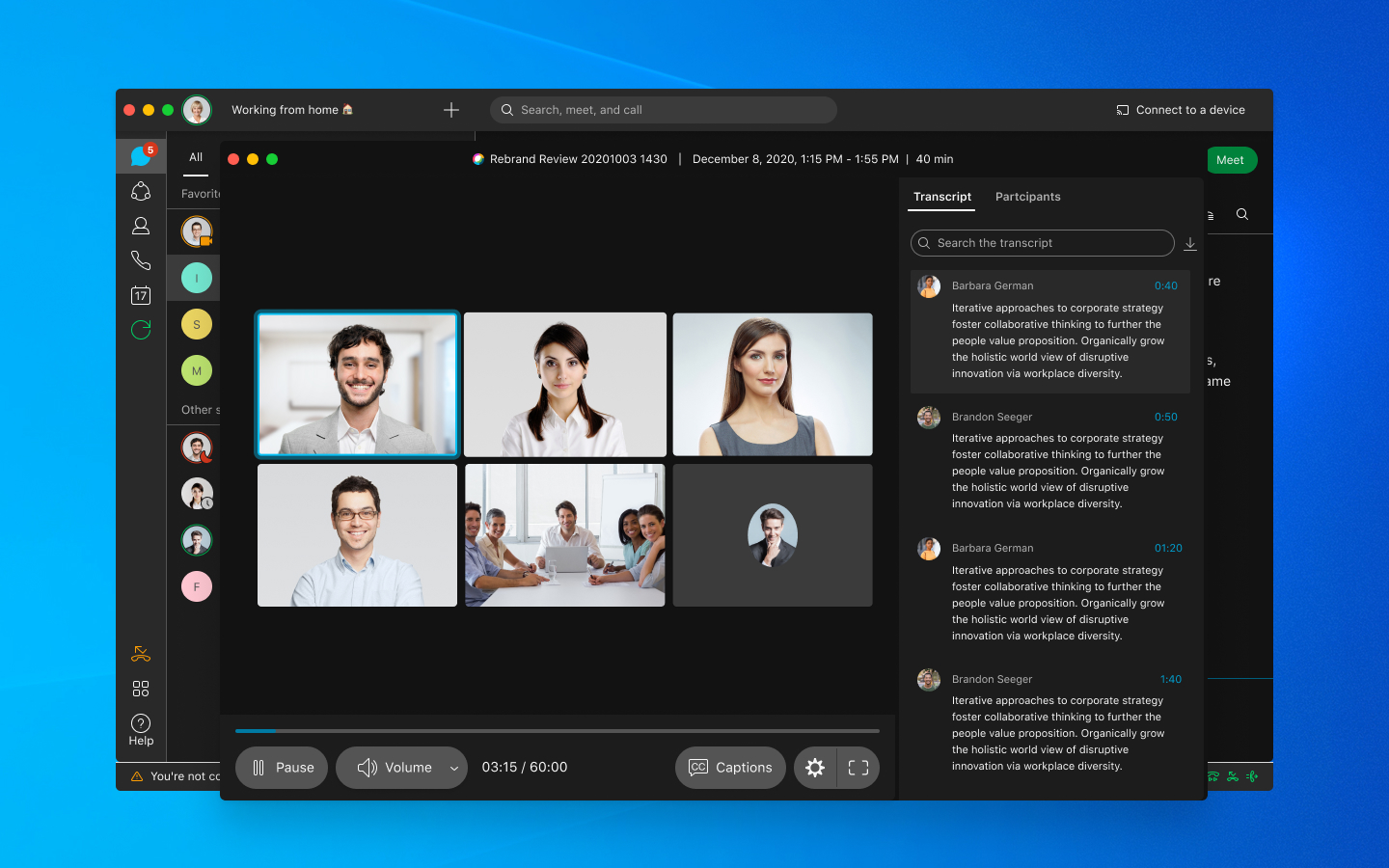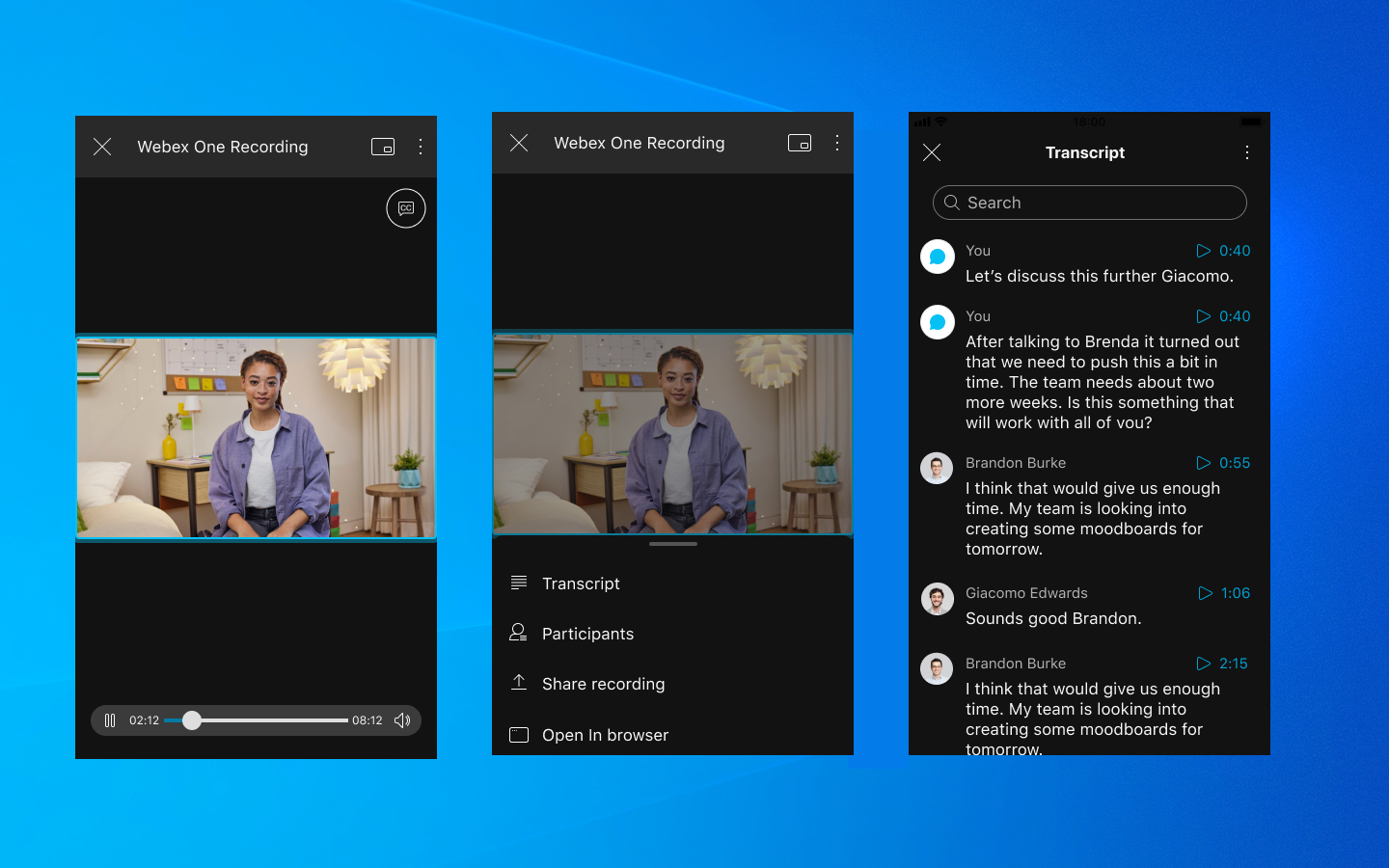 Watch back important meetings that you have recorded previous. Quickly filter through the conversation by searching the transcripts for important talking points you want to listen back to.